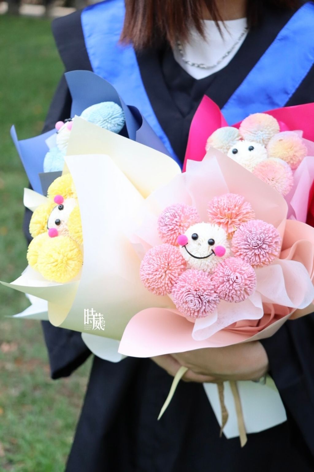 治癒系笑臉 乒乓菊 畢業 乾燥花花束